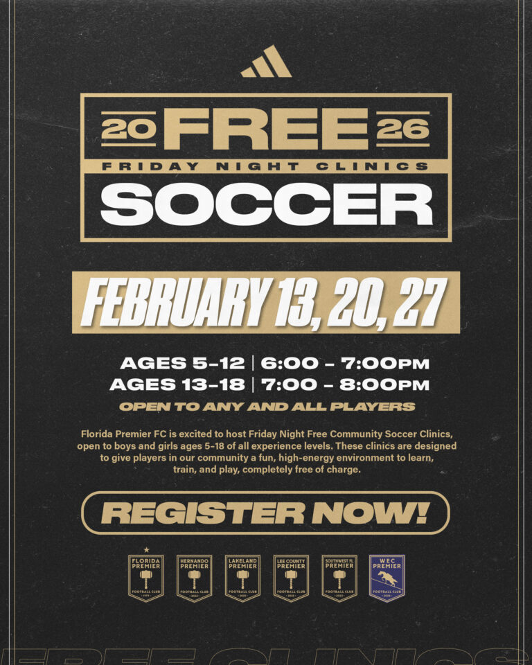 Florida Premier FC is excited to host Friday Night Free Community Soccer Clinics, open to boys and girls ages 5–18 of all experience levels. These clinics are designed to give players in our community a fun, high-energy environment to learn, train, and play—completely free of charge.
